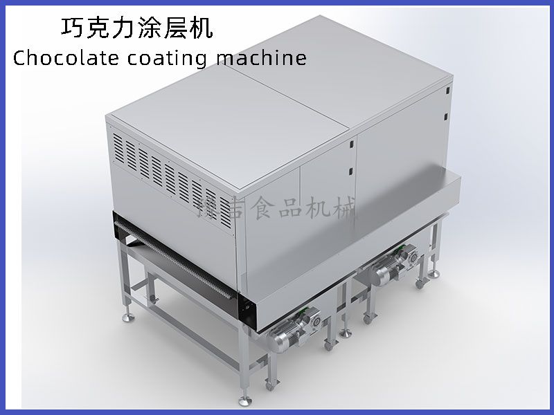 本机是生产花色巧克力品种的专 业设备,能在多种食品表面浸涂巧克力浆料,诸如威化、饼干、蛋卷、蛋黄派、膨化食品,形成多种口味的巧克力制品。自动送料,可以排列整齐,本机可以涂层后的巧克力表面撒花生碎粒或芝麻等香脆食品,拉花是在涂层巧克力表面裱上不同色彩的曲线。